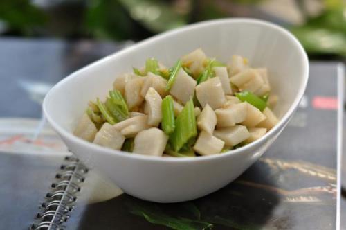 3. 莲藕炒肉片:将猪肉切成薄片,用料酒、生抽、淀粉腌制一下。莲藕切成薄片,用开水焯捞出备用。锅中放油,加入蒜末爆香,然后放入肉片翻炒至变色,再加入莲藕继续翻炒,加入适量的盐、鸡精调味即可。